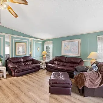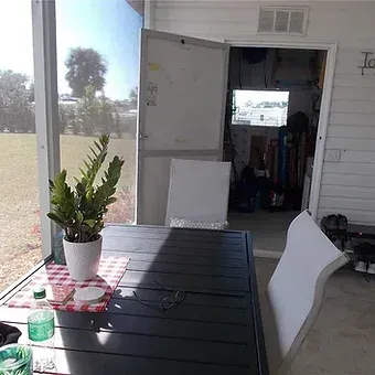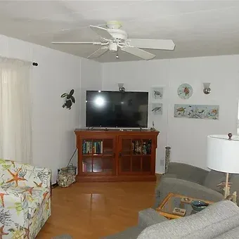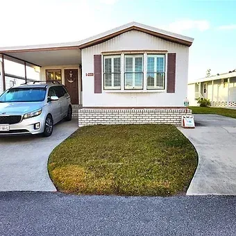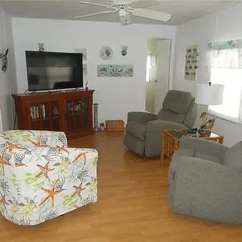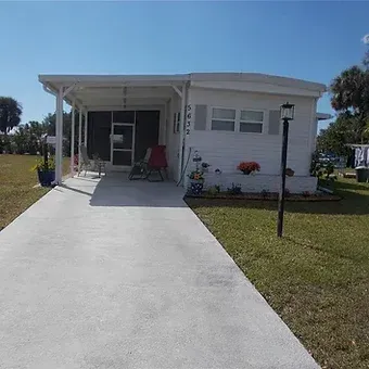 This is a 2 Bedroom, 2 Bath partially furnished home in the 55+ Gated Community of Holiday Park and NOT IN THE PET SECTION. This home backs the Storage Compound. Laminate flooring in most of the home including the Florida Room. The eat-in Kitchen has plenty of cabinets. The split floor plan has the Primary Bedroom in the back of the home. Off the Lanai is the 8 X 11 shed which has the Washer and Dryer. Behind the house is a 11 X 17 Patio for your entertainment needs. As per owner, Roof, Carport & Lanai new in 2023. In Holiday Park you own the land with a deed and your $195.00 monthly maintenance fee ($2340.00 a year) is included in your taxes. The community features 2 clubhouses, 2 swimming pools, a library, a fitness room, tennis courts, pickleball & bocce courts, to name a few. You are close to shopping, dining, entertainment, numerous golf courses, sports facilities, and SW Florida's renowned beaches. Come take a look!